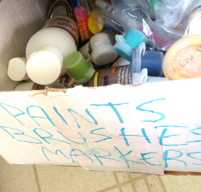 I was juuuust about to start adding colorful details, using some no-name craft paints from a jumbled box of crap I keep under the kitchen counter: