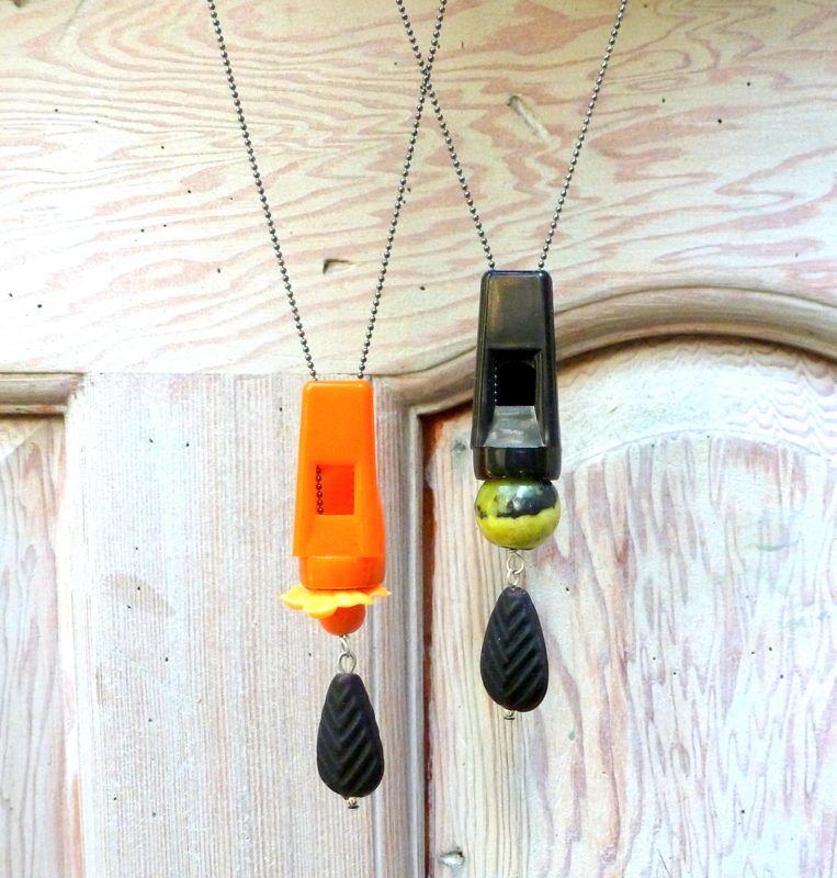I also came up with these odd-but-interesting necklaces, using the whistle mouthpiece: