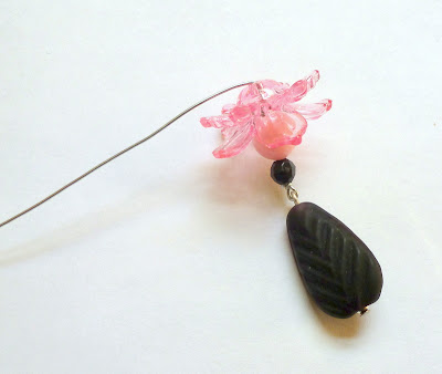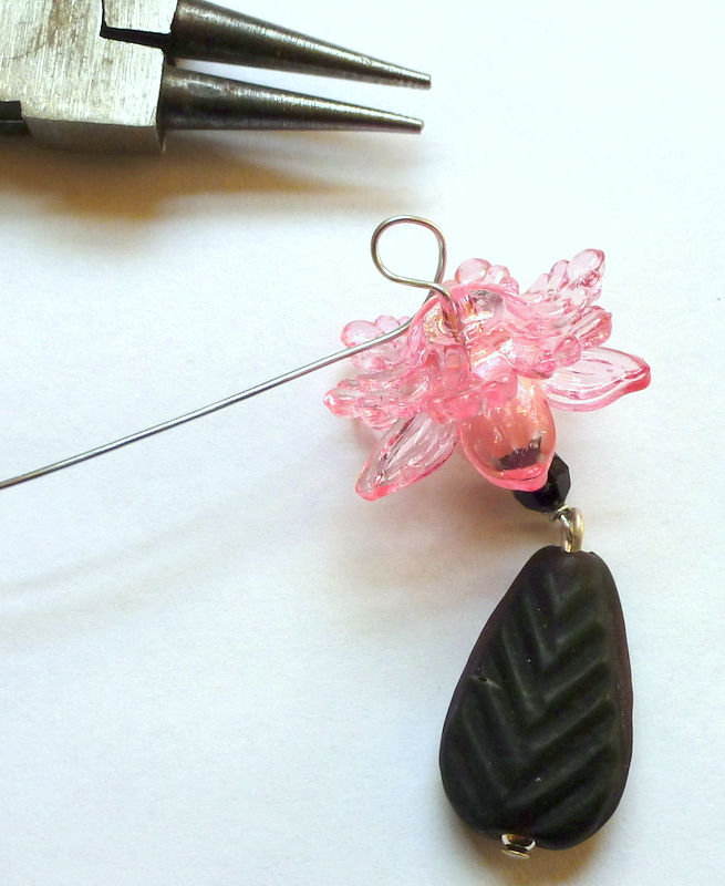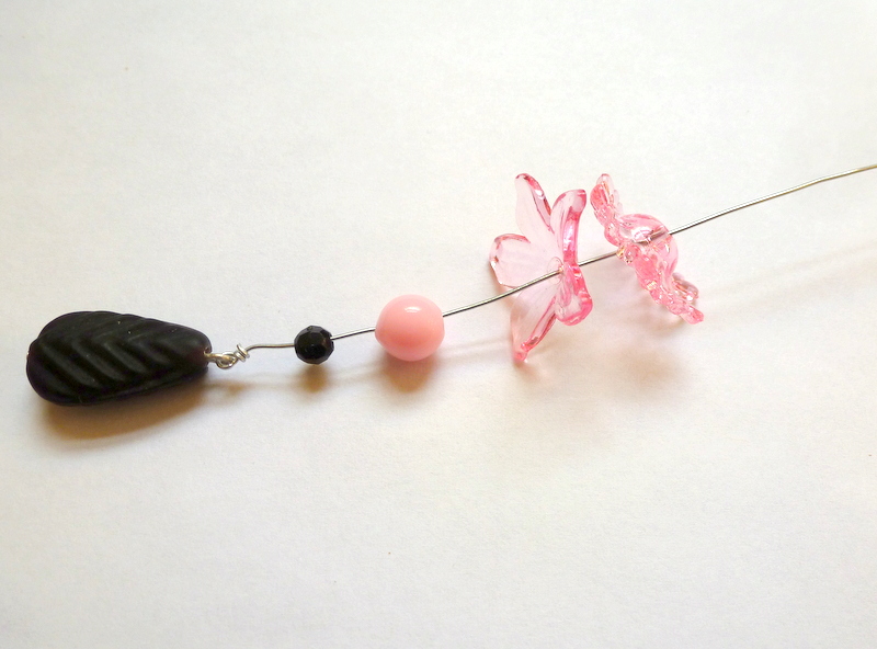 Make a wrapped loop at the end of some craft wire. Put a bead on a headpin and make a plain loop to create a dangle. (For a detailed tutorial on making wire loops, click here.) Add the dangle to the wrapped loop.