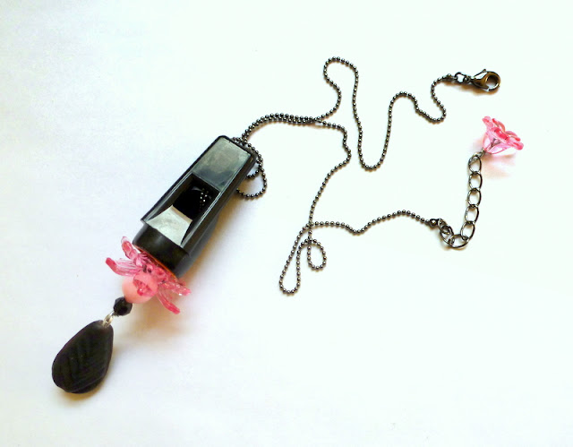 One last thing: you need something on the ends of your chain or cord that's wider than the whistle opening, otherwise it will slip right out.