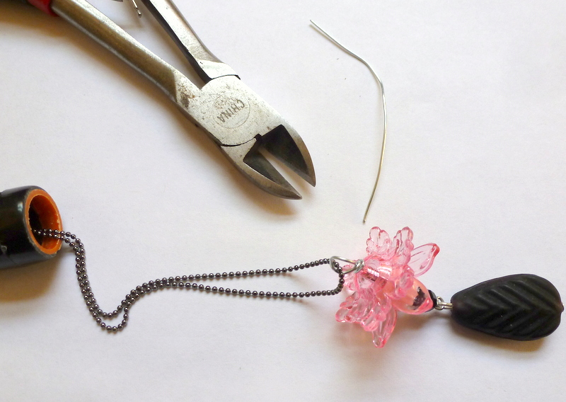 My chain already had a clasp on one end. On the other end, I added a little bead dangle.