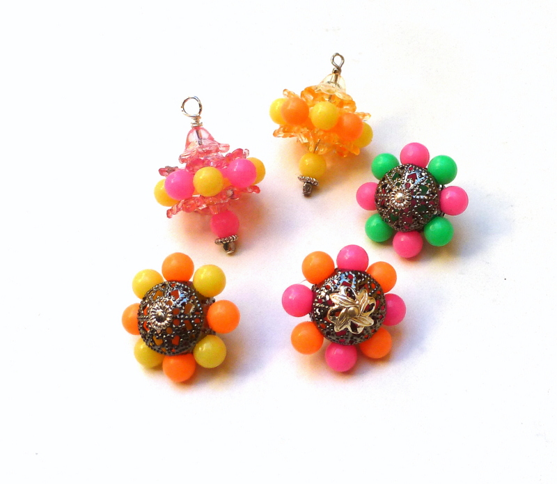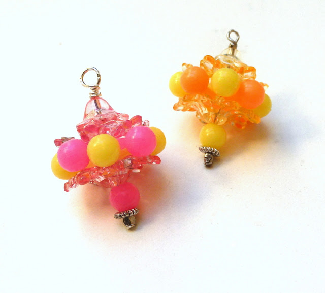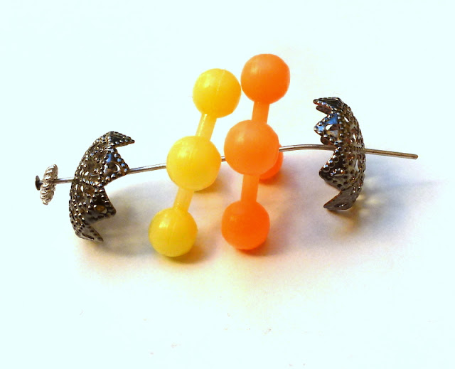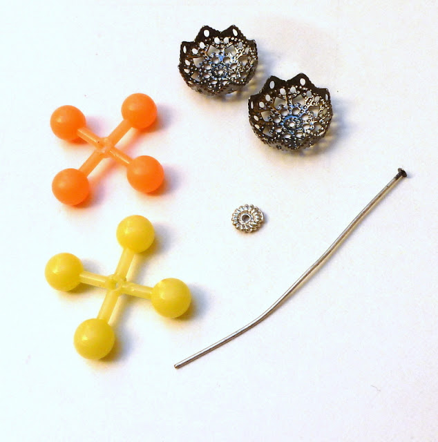 Stack two colors of your new four-armed 'beads,' and sandwich them between bead caps. Thread the sandwich onto a headpin.