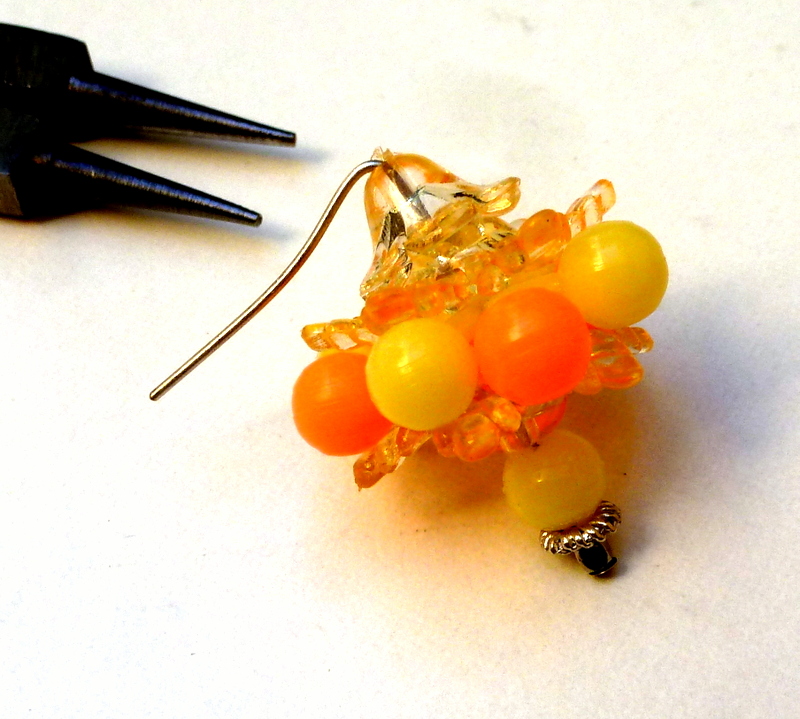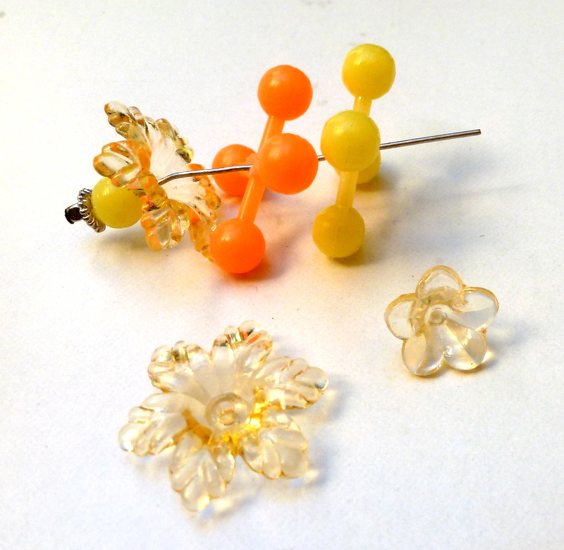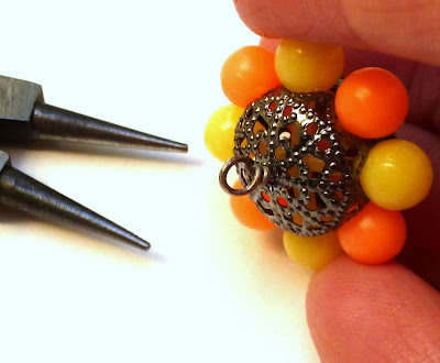 Tip: Try to use something symmetrical to make the 'bread' of the sandwich. Off-center flowers, or bead caps with an odd number of petals, won't squish the jacks together tightly. You'll end up with wavy balls. And wavy balls are not normally a good look for anybody.