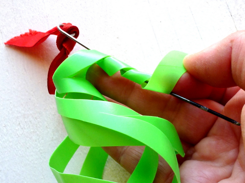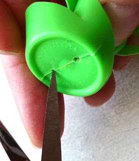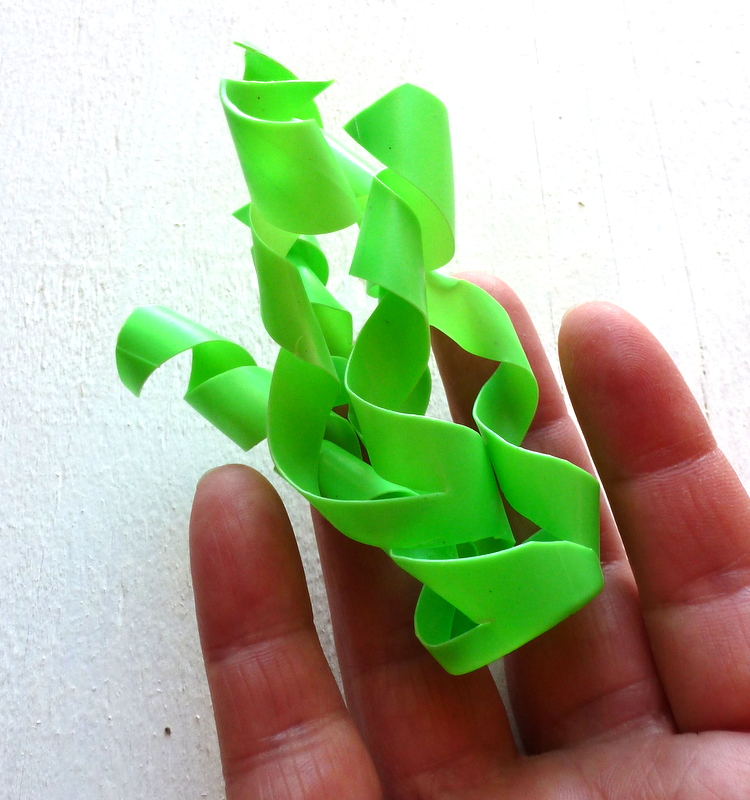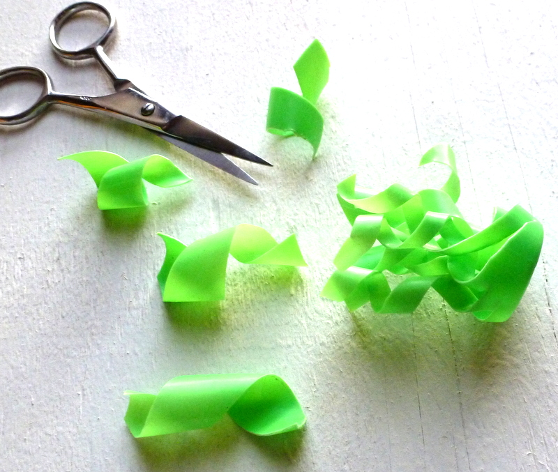 (For your first try, I advise something made of thinner plastic - so much easier to cut! Those prescription bottles take a lot of muscle - but oh, how they catch the light.)
