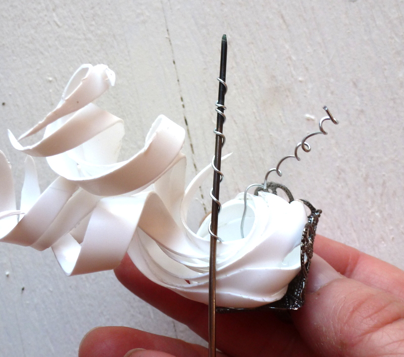 Grab one of the strips and wrap it around a skewer. Try to yank it as tight as possible. It will set into a curl.