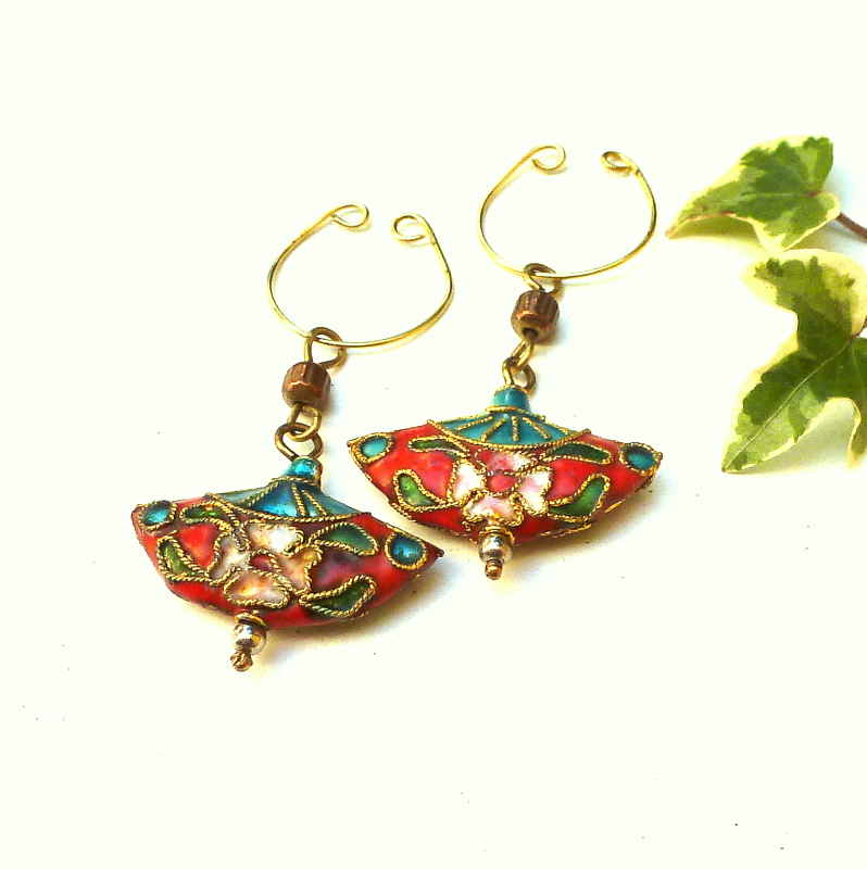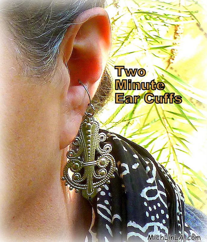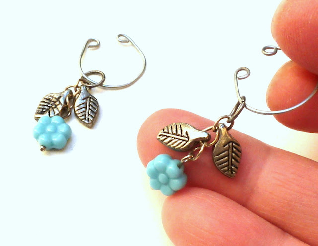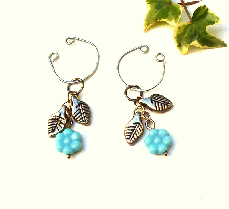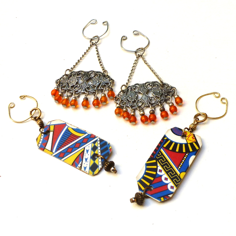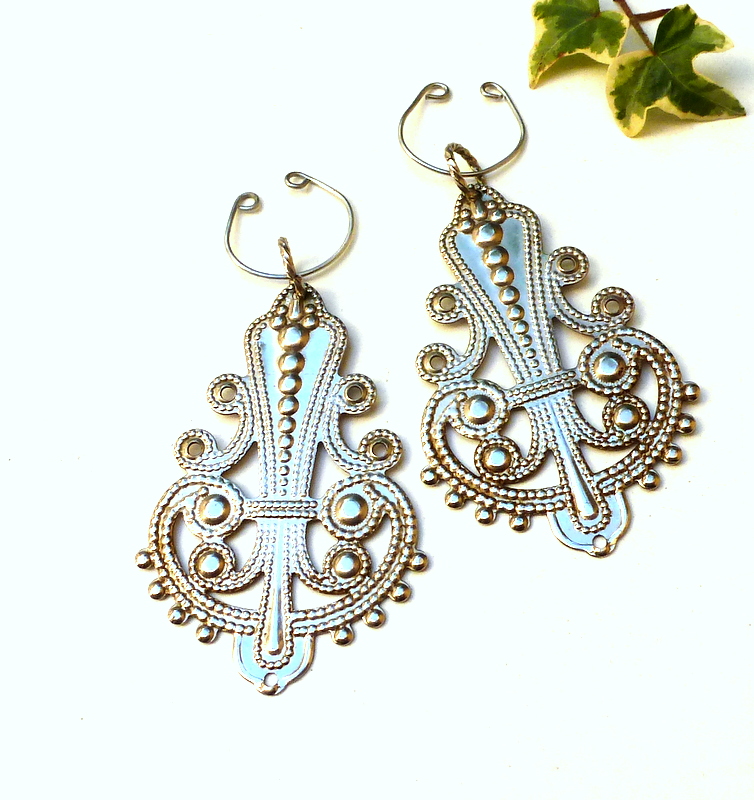 And when I say easiest, I mean easy to make and easy to wear. Have you ever tried ear cuffs? They are so comfortable! No piercing, and no tight clip-ons. They hang in a civilized manner from the inner curve of your ear, and most of the time you can barely feel them.