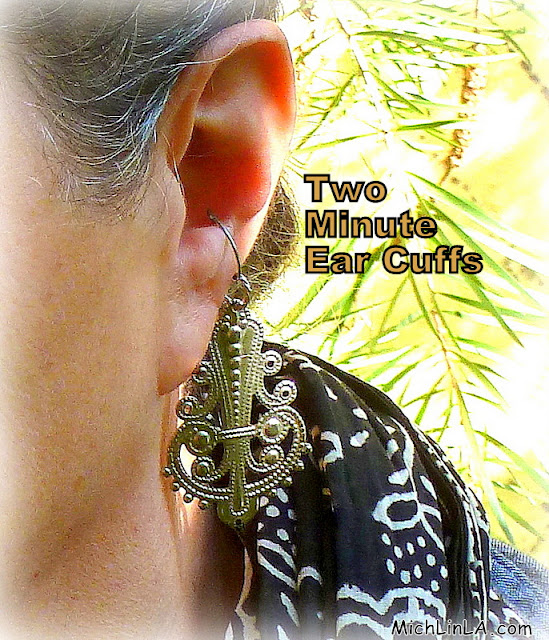 So how do I wear them? Well, I'll tell ya. I wear them hung from the world's easiest ear cuffs.