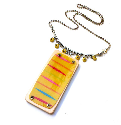 ReplyDeleteI just love how you've attached the plastic from the chip bowl to the wooden dominoes. Makes such a lovely pendant, Michelle!