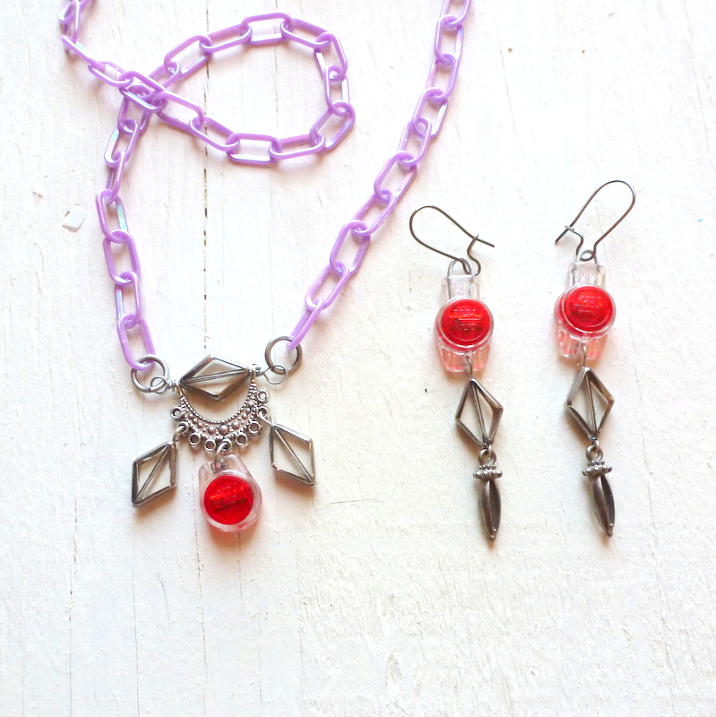 I also made a funky fun necklace. (I hope you like the color combination!)