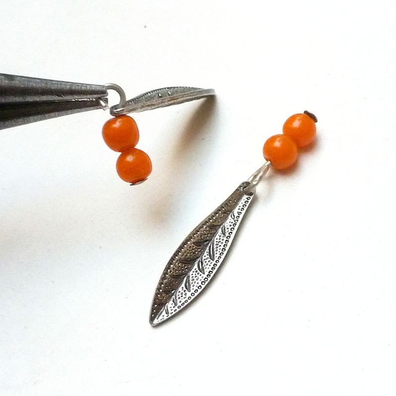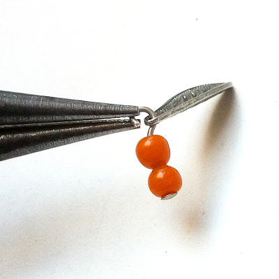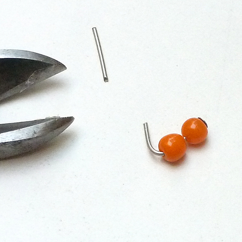 Put the two little beads on a headpin. Bend the pin sideways and snip short.