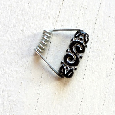 After that, open the loop on an earwire, hook on the tiny circle at the top of your new little wire contraption, and close the earwire loop to secure.
