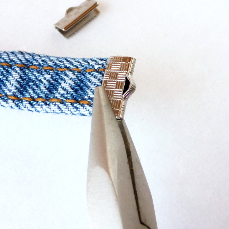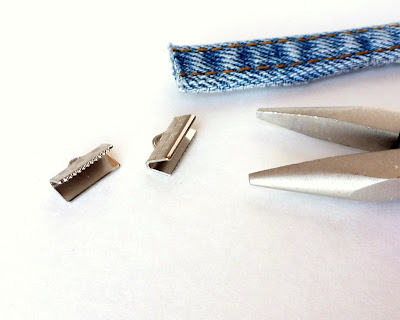 Now you need two ribbon crimps. (Find 'em at craft stores, bead shops or online.)