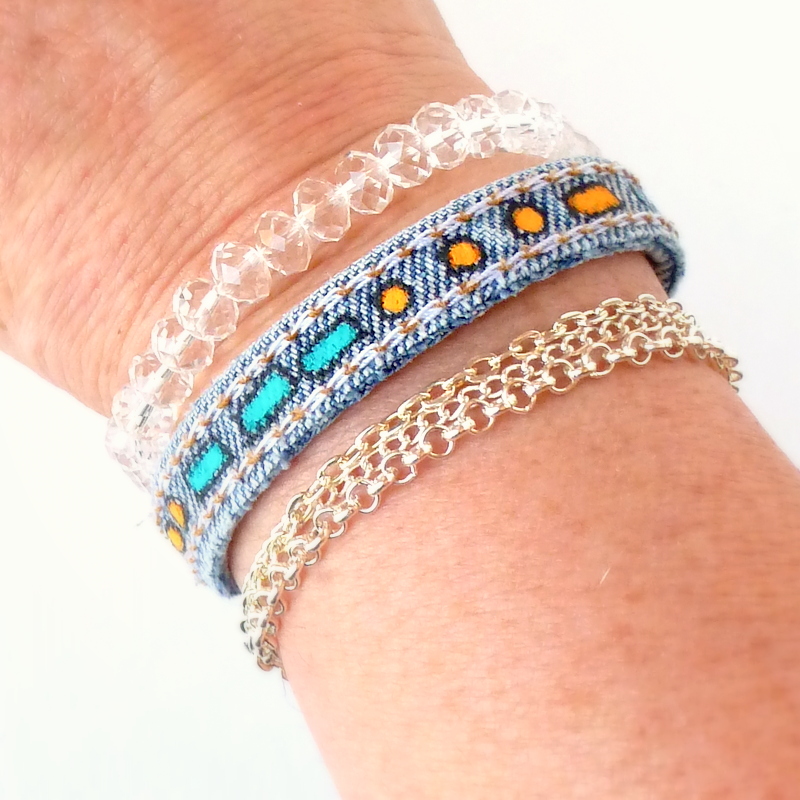 ReplyDeleteJeepers that is pretty Michelle. Love this use of DENIM, one of my fave things in the world!!! Um, what would I write on mine... Hmmm well... I'd probably write: "This bracelet rocks!" Or something equally obvious. :)