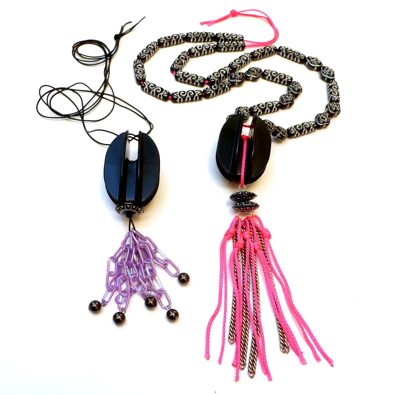 First person to guess correctly will receive a fabulous prize! (Namely, one of these nifty necklaces. OR a groovy goodie bag of random crafty supplies.)