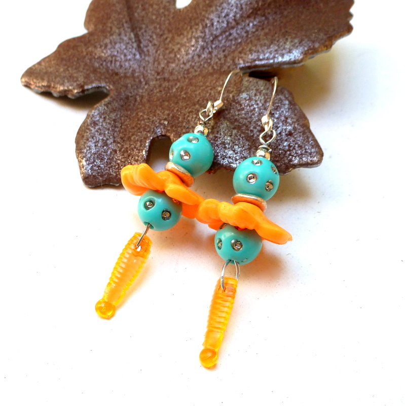 The turquoise earrings in the second image look like little robot ballerinas. :)