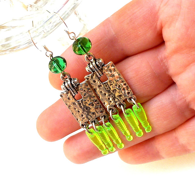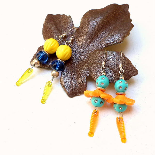 Oh yes, definitely those neon fishing wormies. And how cute are they as pendants. I bet you loved "tackling" that one eh?... Hee heeee!