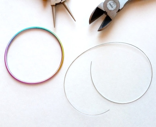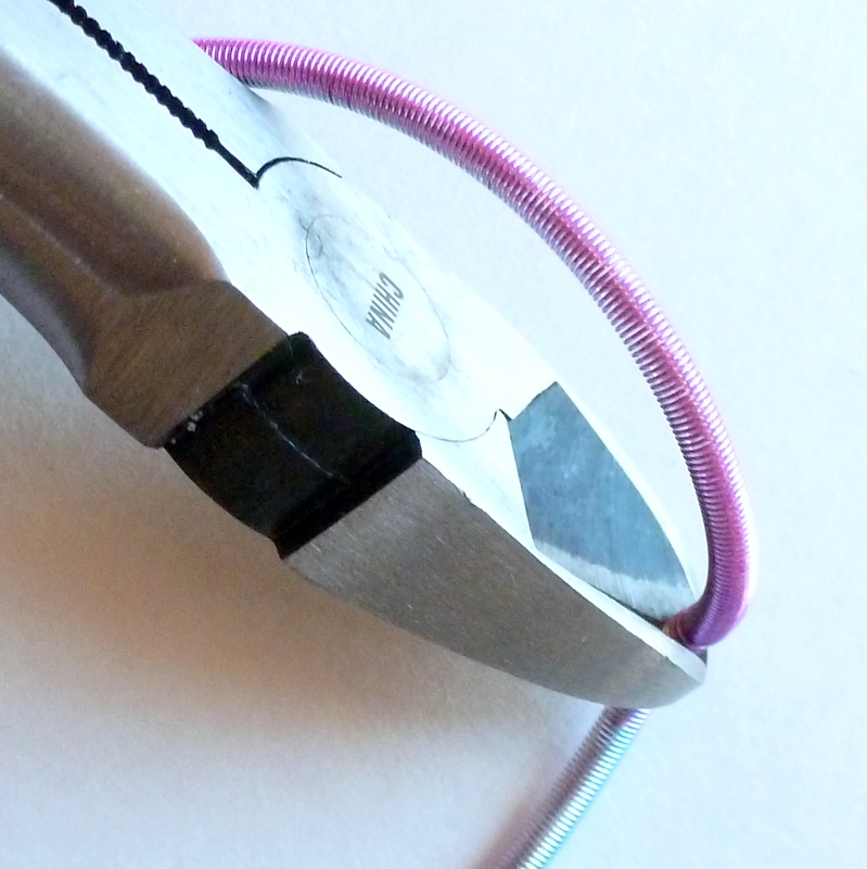 Next, cut the coil bracelet apart with wire snippers. Try to find the spot where the coil is soldered together. (Sometimes it's hard to tell - in that case, cut anywhere!)