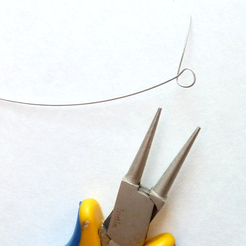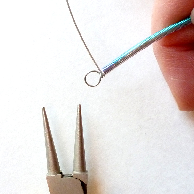 Thread the craft wire through the stretchy coil, and finish with another wrapped loop.