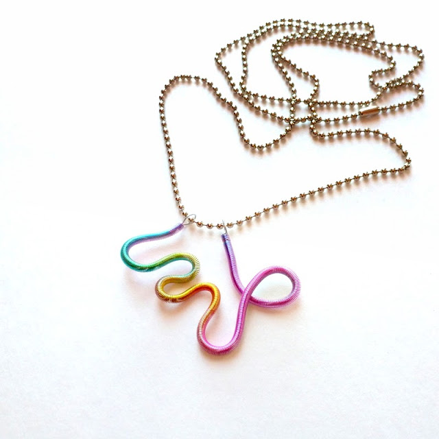 That's yer pendant! Add a neckwire, chain or cord to create a delightfully squiggly necklace.