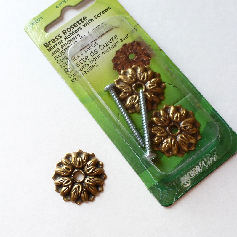 Mirror rosettes from the hardware store. (Used to secure a mirror to a wall or cabinet door.) You can often find a version of these made of clear plastic, but I love the metal ones, don't you? They're so charming - and I love that they are still around.