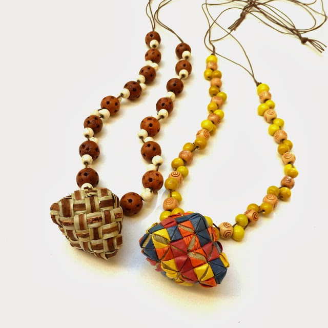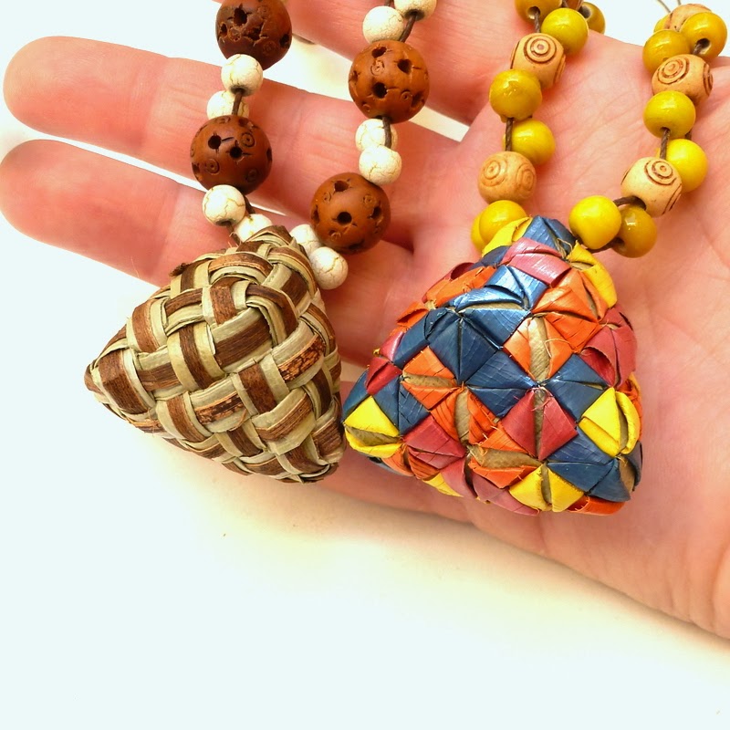 Take a peekie at these upcycled necklaces, featuring some pretty hand-woven pendants.