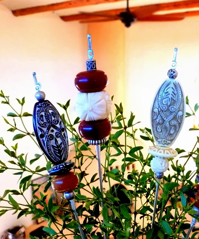 ReplyDeleteI can see these as plant markers. Use small piece of aluminum cut from a soda can, emboss the piece or write on the label with sharpie, attach to top of these beautiful creations. Voila!