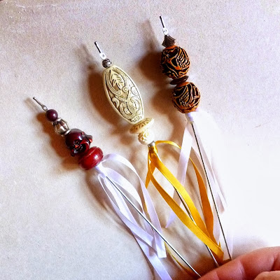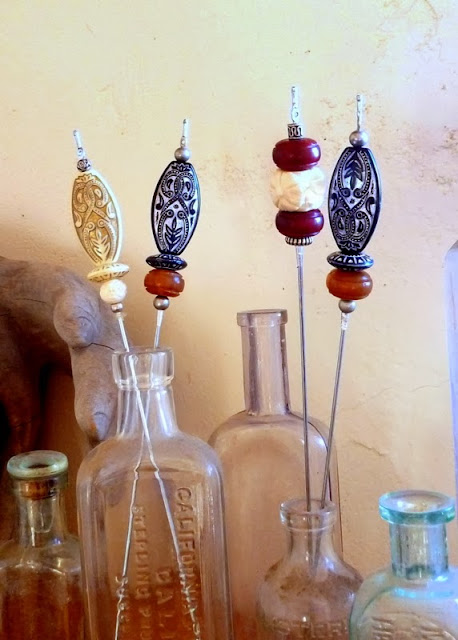 I have a special love for what I shall, for lack of a better term, call 'Stuff On Sticks.' Over the years I have stockpiled a bunch of favorite ways to put pretty beads onto long poky things, turning them into ornamental items of decor. Today begins a series of tutorials on this exciting topic.