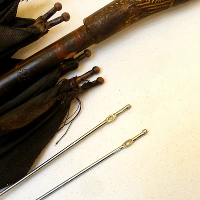 I simply adore the dainty ends of umbrella wires, with their ball finials and open loop! If you have ever disassembled a broken brolly, you will know exactly what I mean.