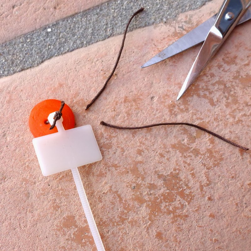 Ready to DIY? Gather string, a button and pointy little scissors.
