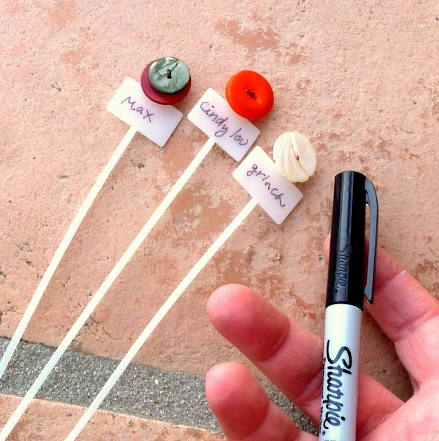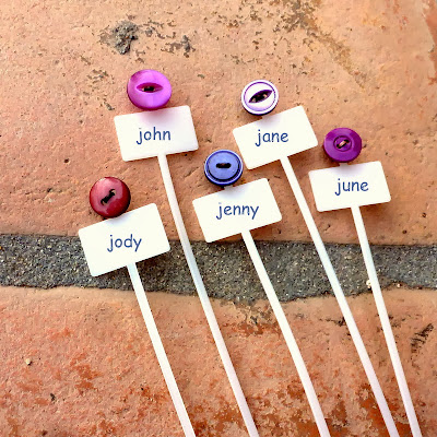 Stick them into small pots or tiny flower arrangements for party place cards. They also make great labels for a potluck or buffet.