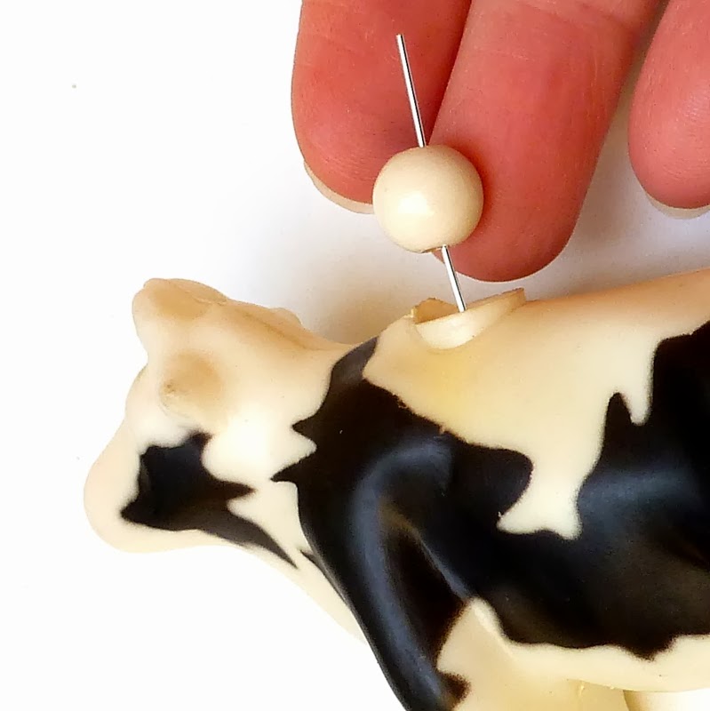 If you don't have a headpin long enough to go all the way through your critter, use craft wire to make a faux headpin, like this: