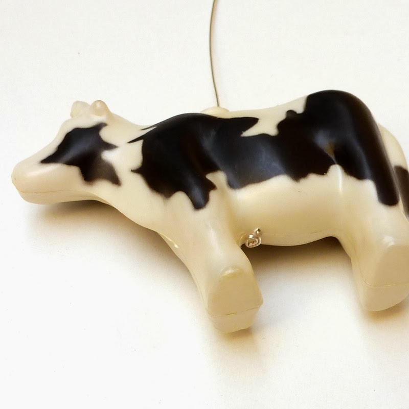 You know those funky strings of novelty lights? The ones with plastic bulb covers shaped like animals, chili peppers, flamingos, lanterns or anything kitsch-worthy? That's where I got my little moo cows.