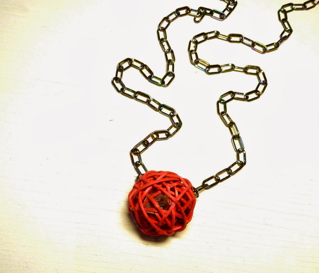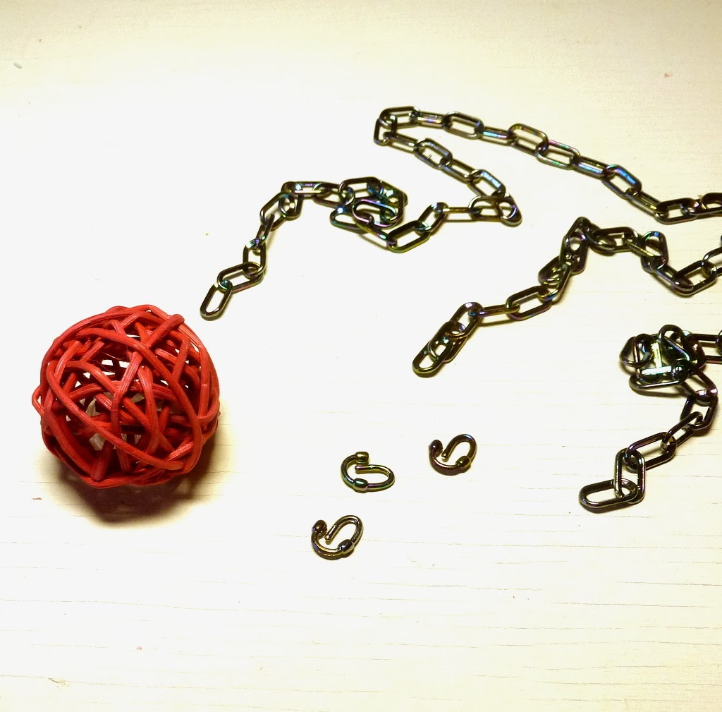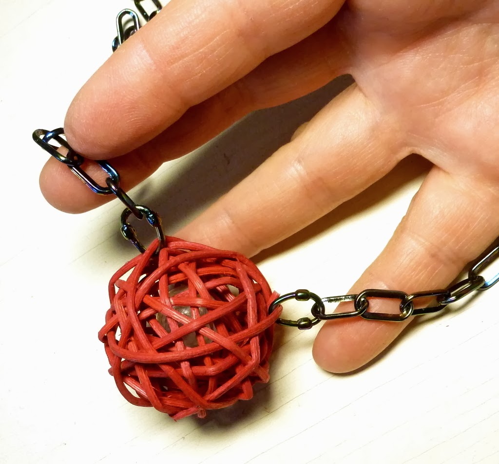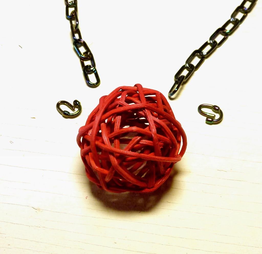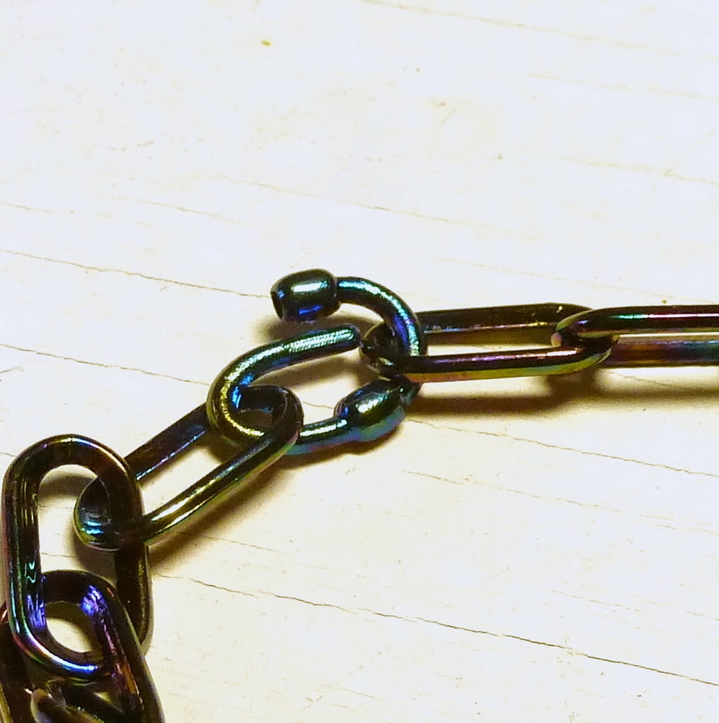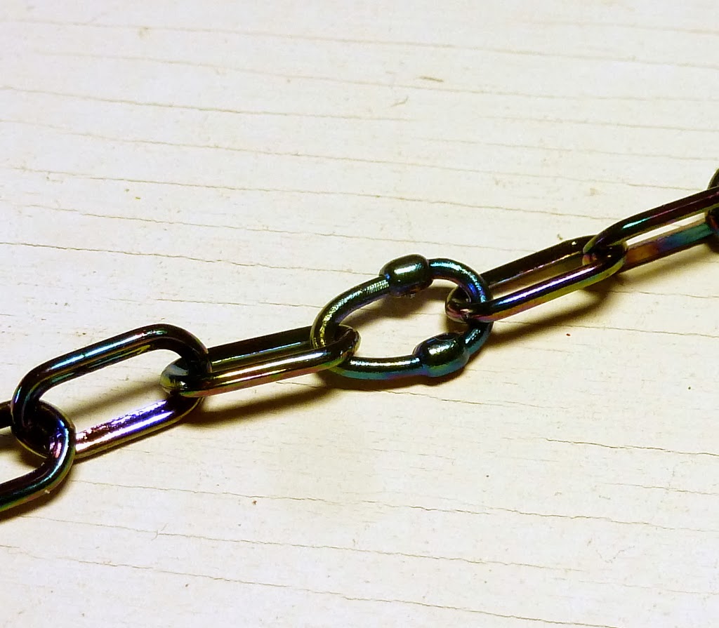 Now the necklace - another very easy one. I used some light plastic chain, which comes with its own linkers. (Of course you can use ordinary chain and jump rings instead.)