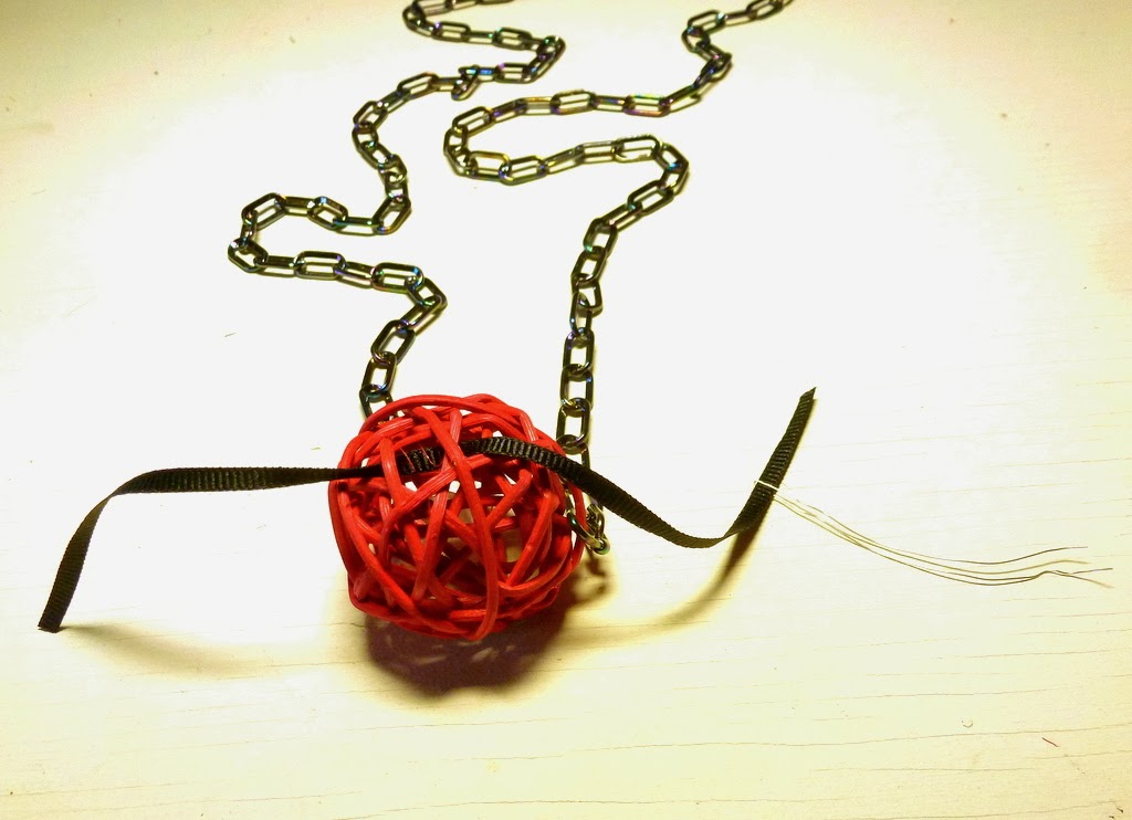 Then I used two more linkers to connect the chain to a couple of spots on the kitty ball.