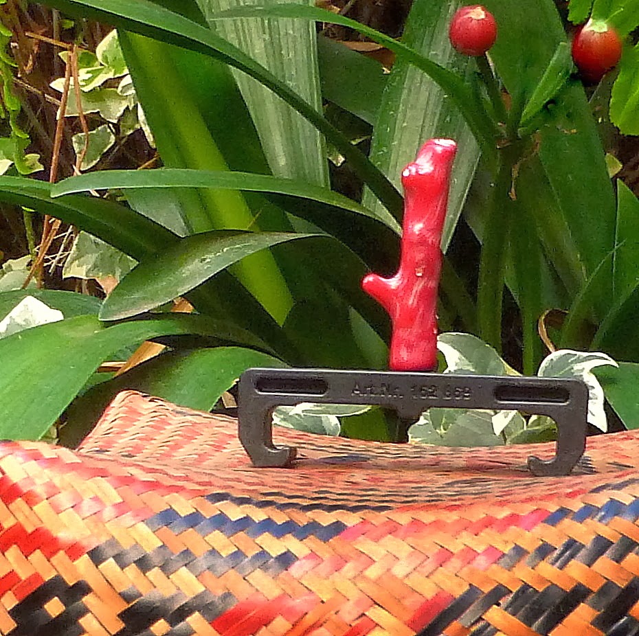 That one has a big chunk of branch coral, wired on with two drilled holes: