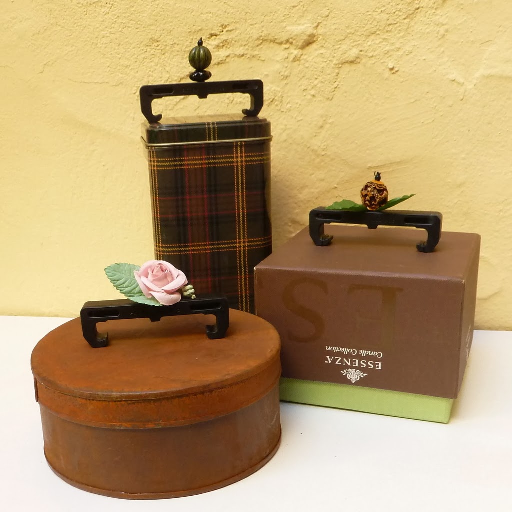 I love re-using old tins and commercial containers - they are often super sturdy and beautiful, and I hate to throw them out. Adding a decorative handle turns them into great gift boxes, or cool storage for anywhere around the house.