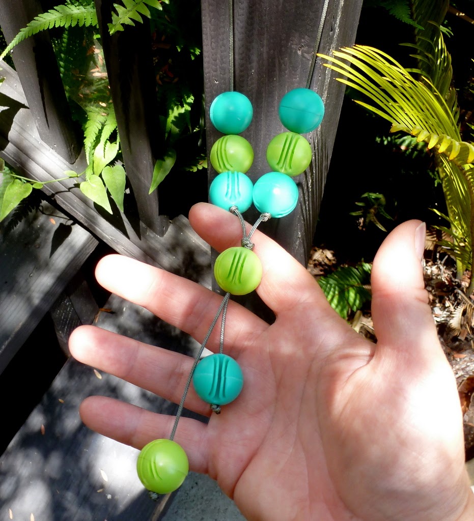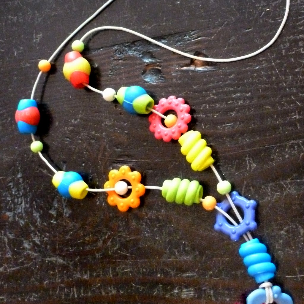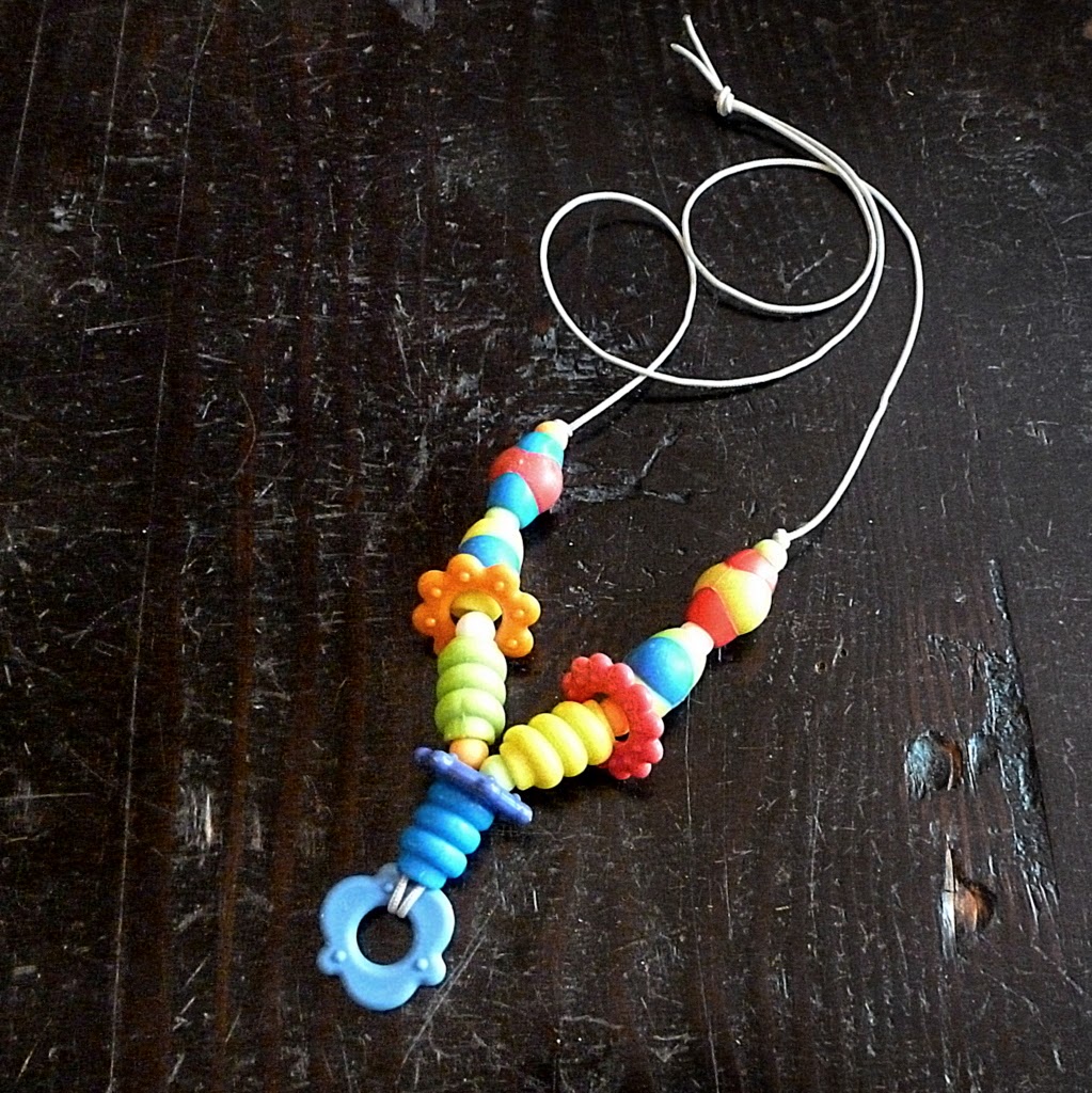 ...and use the beads to make sweet, silly, indestructible nursing necklaces. Every necklace is different, depending on the particular beads I have harvested.