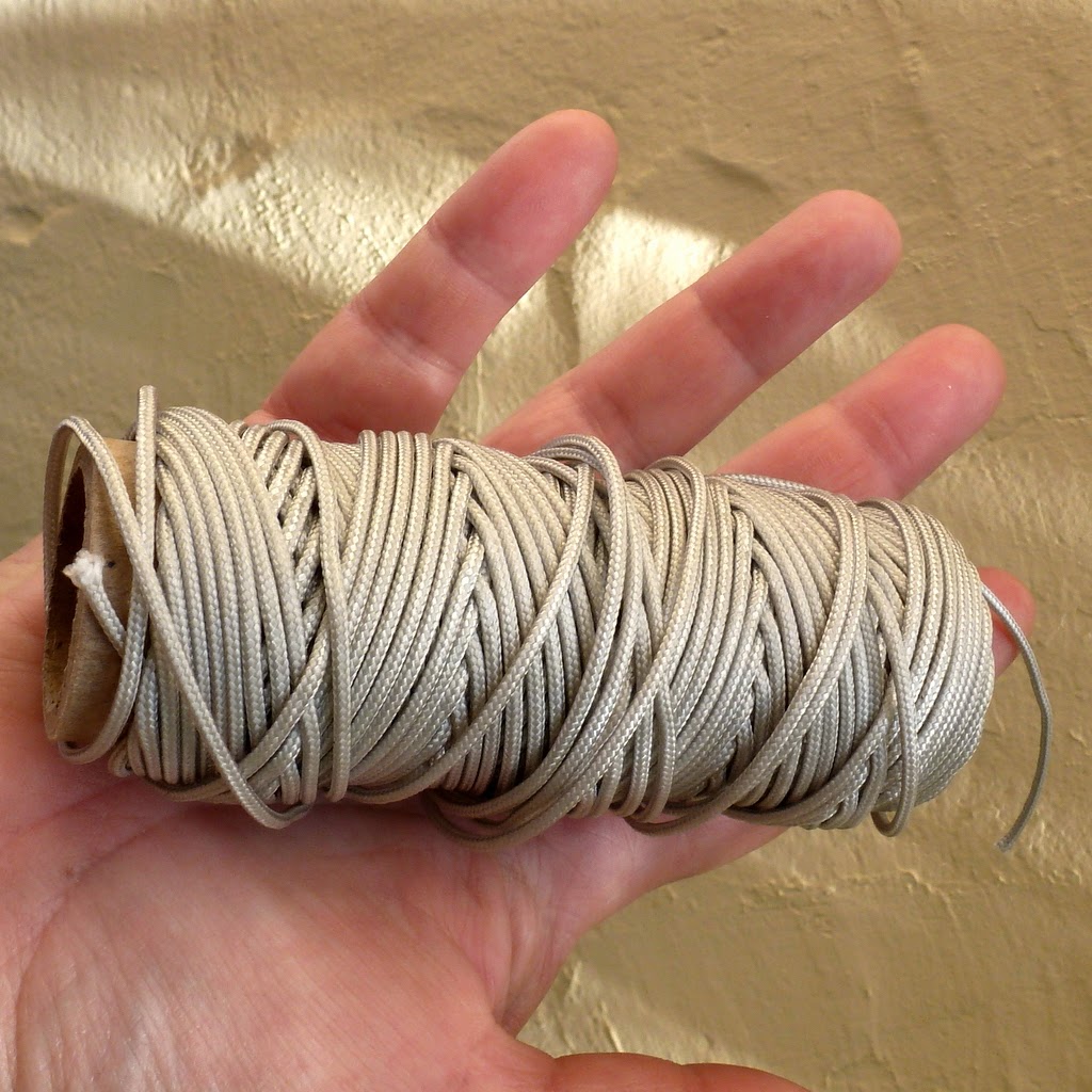 To string them, I use strong nylon cord or paracord.