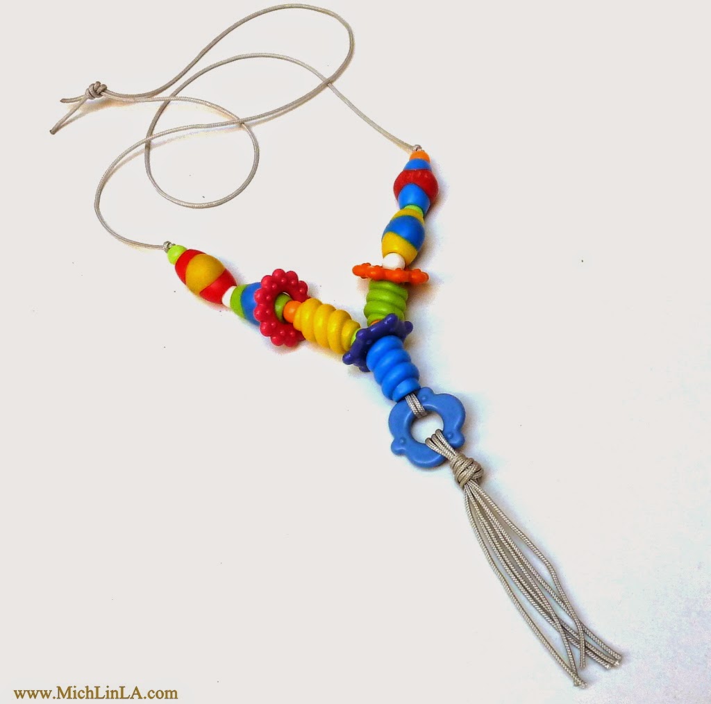 One last note. I am not a mom. Got no teething babies on hand at the moment. And yet, I personally wear kooky upcycled baby-toy necklaces all the time! They are very much my esthetic: bright, amusing and cute as a box of Teletubbies.