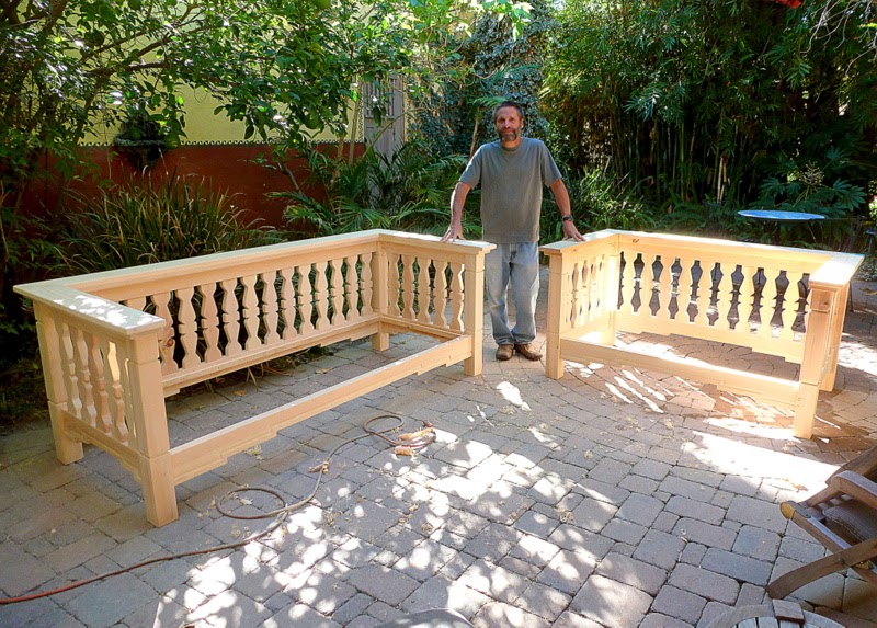 Well, 'tis a funny story. I have this husband, see, who built me a set of amazing couches. Southwest style, solid wood, coolest cutout silhouettes...here they are in progress.