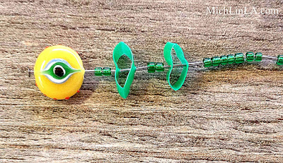 The flowers are pressed glass; the stems are your basic seed beads. Now for the cool upcycled bit: those darling tiny leaves. Yep, you may have already guessed.