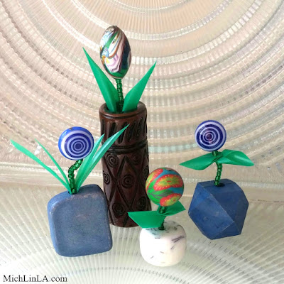 Sorry, I forgot to put something in the picture for scale - the littlest one is only an inch tall. Each 'vase' is just an extra-large bead. I'm always so excited to find a use for random honking big beads that are too bulky, ugly or weirdo for jewelry.