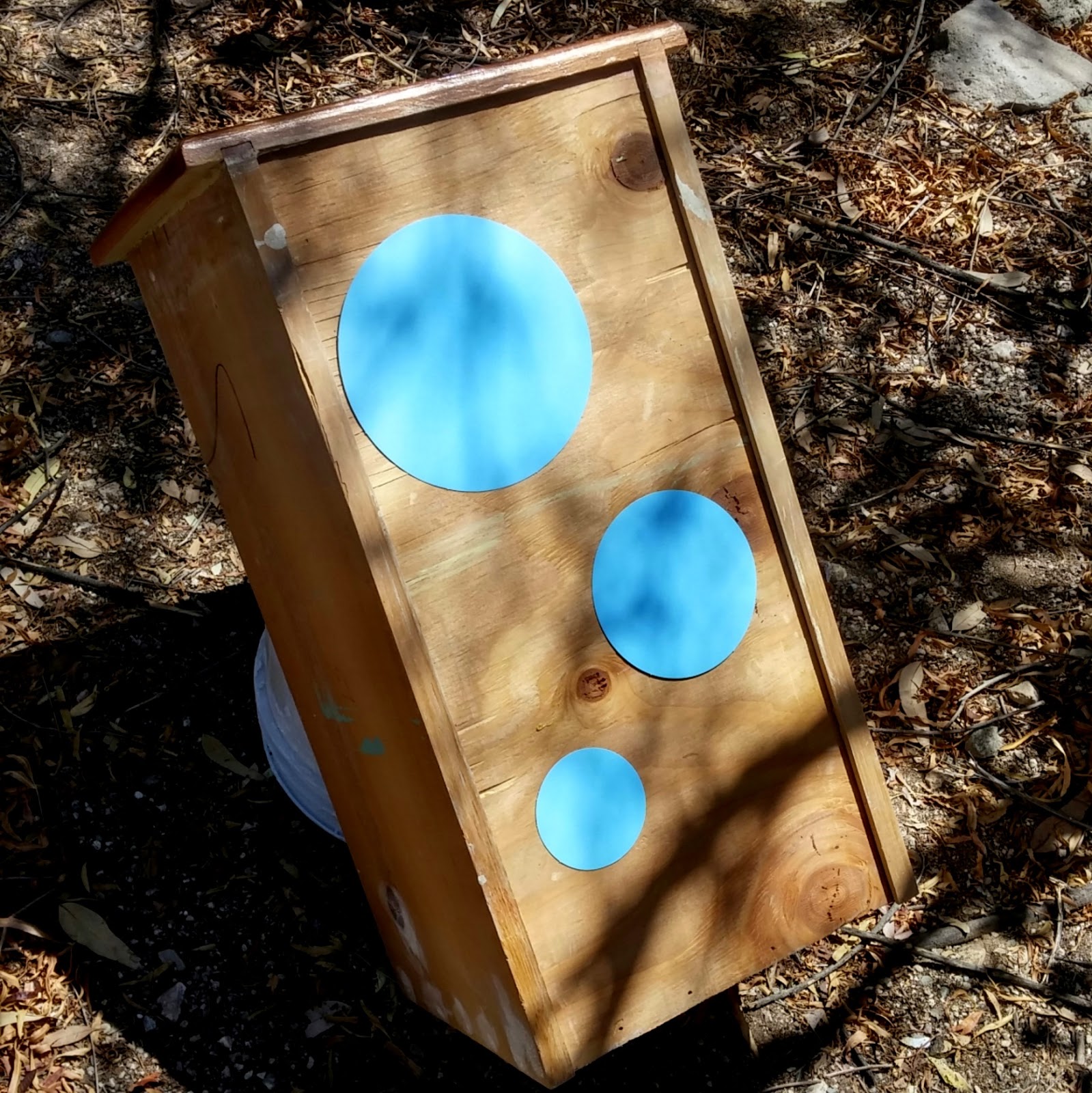 My favorite thing about them is the reverse-stencil effect, which shows some of the natural wood. The circles on the large drawer, and the stars on the skinny drawer, were created in the same way.