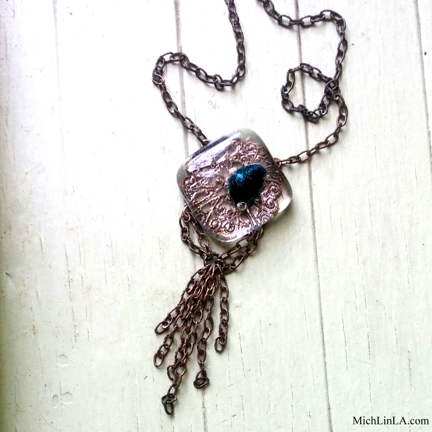 I just love how the filigree shows through and becomes an integral part of the necklaces.