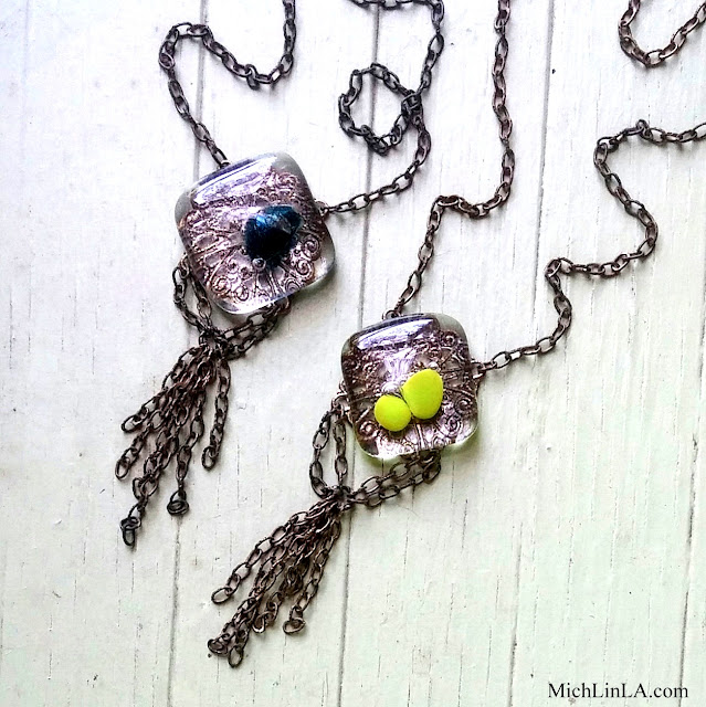 ReplyDeleteLove these necklaces Mich! - the metal showing through the glass looks stunning. A fused glass cabochon making class eh? sounds like fun!! And CONGRATULATIONS on your published project!! How exciting!! :)