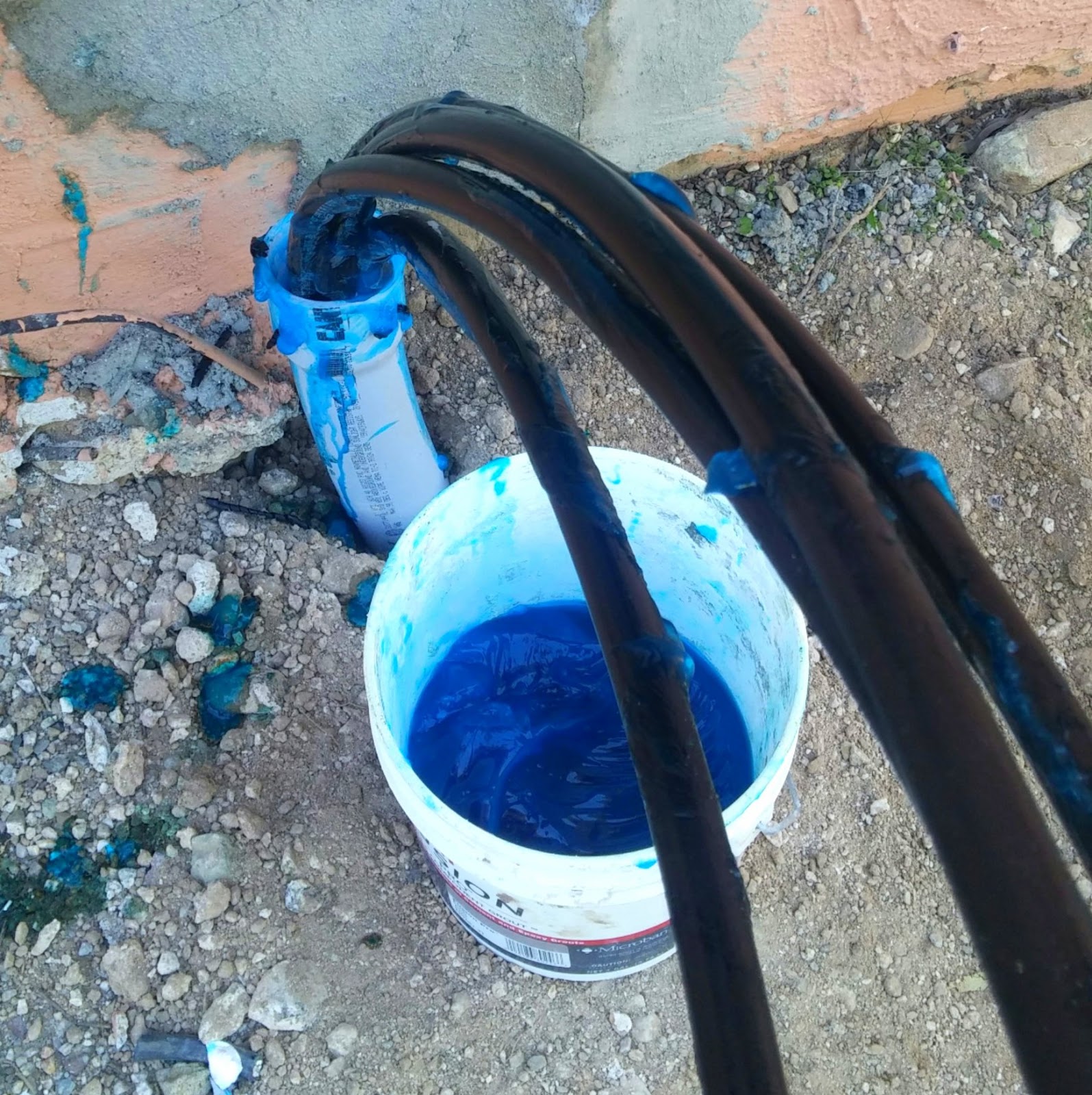 How is that done, you ask? With a winch, a lot of swearing and a bucket of bright blue KY jelly to lube all the wires so they will go through the pipe.