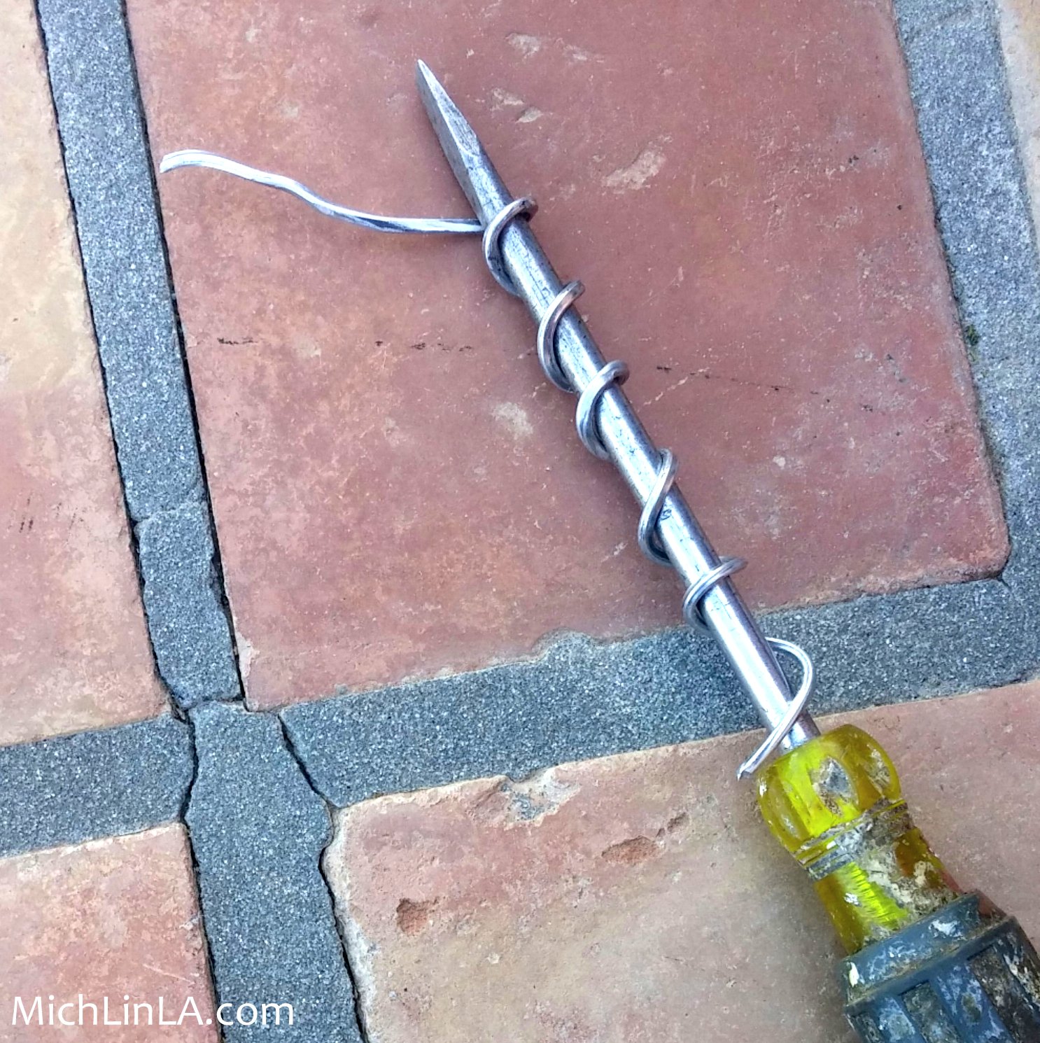 I grabbed a screwdriver and twisted a wire scrap around and around. The aluminum looks hefty, but is so easy to bend you can do it with your fingers.