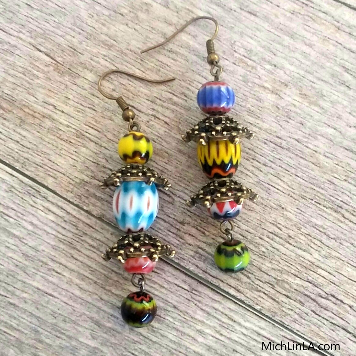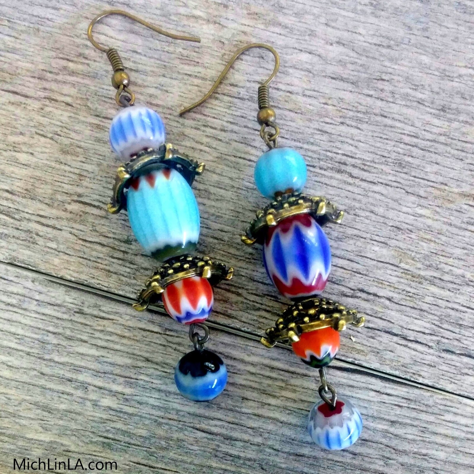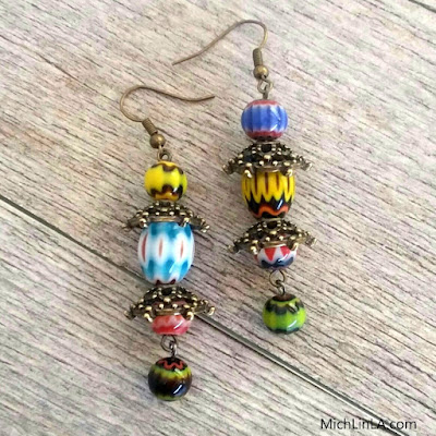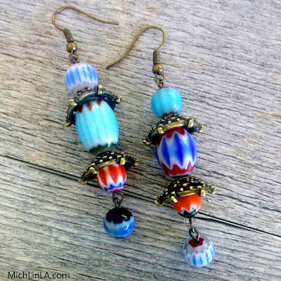 Although sometimes chevron beads can be spendy, you only need a few for the earrings. The real fun is in choosing your combination...balancing colors, balancing designs...ooh, it's pure creativity.