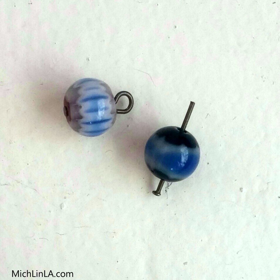 Step 1: put a bead on each headpin. Snip the headpins short and turn loops to create dangles.