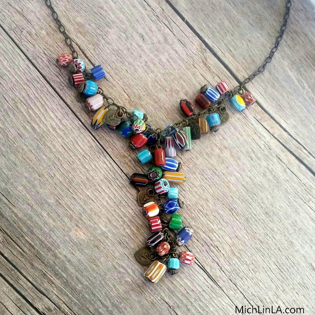 The original inspiration for the earrings came from this necklace - I made it years ago and have always loved the dynamics of all the different colors and sizes.